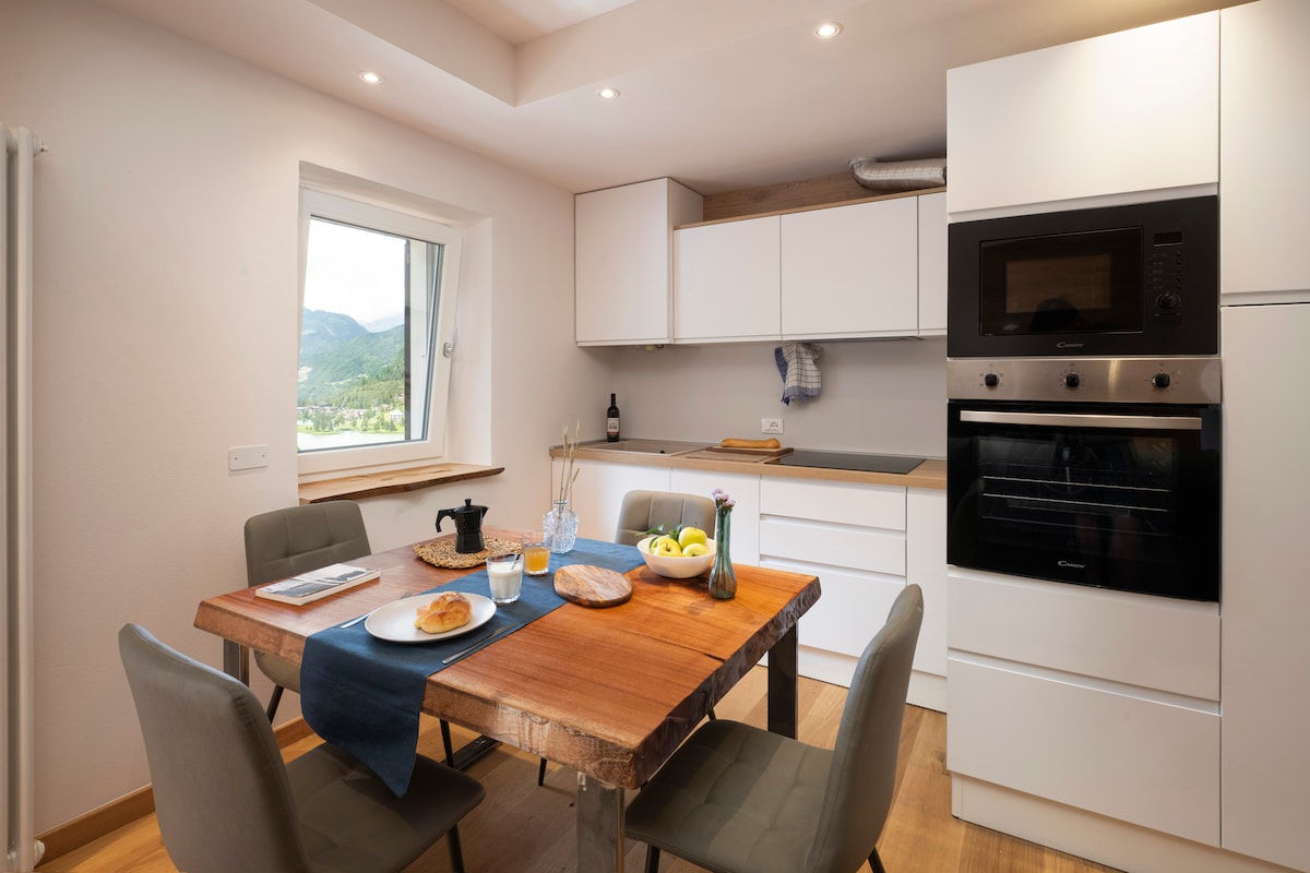 In the house there is also a spa with sauna,Turkish bath, relaxing area. It is in Alleghe centre,it is in a quiet and panoramic location just in front of Alleghe lake, 150 m. far from the square and 350 mt. from Civetta gondola. Outdoor parking place, elevator and ski room with ski-shoe dryer or bikes deposit. The apartment has 2 double rooms, a living room with divan bed for 2 people, 2 bathrooms, a kitchen, Tv sat, dishwasher, washing machine, hairdryer, microwave oven, internet wi fi.