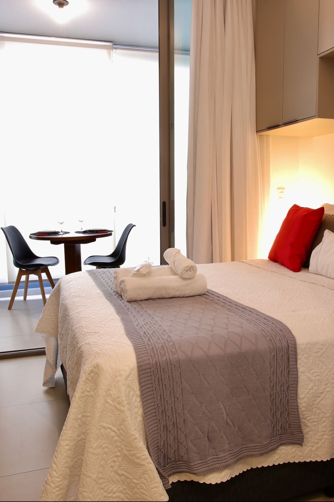 Experience One Eleven in Vila Olimpia. This modern apartment features large windows with breathtaking city views and natural light. The unit boasts 600 Mbps internet and a 4K HD TV. For total comfort, it has a Hot/Cold AC system: 27,000 BTU/h unit in the living room and 10,000 BTU/h in the bedroom. The bedroom is quiet and dark for a restful sleep. Impeccably maintained, you’ll be walking distance to top restaurants and business hubs—a safe, upscale retreat with a stunning urban backdrop.