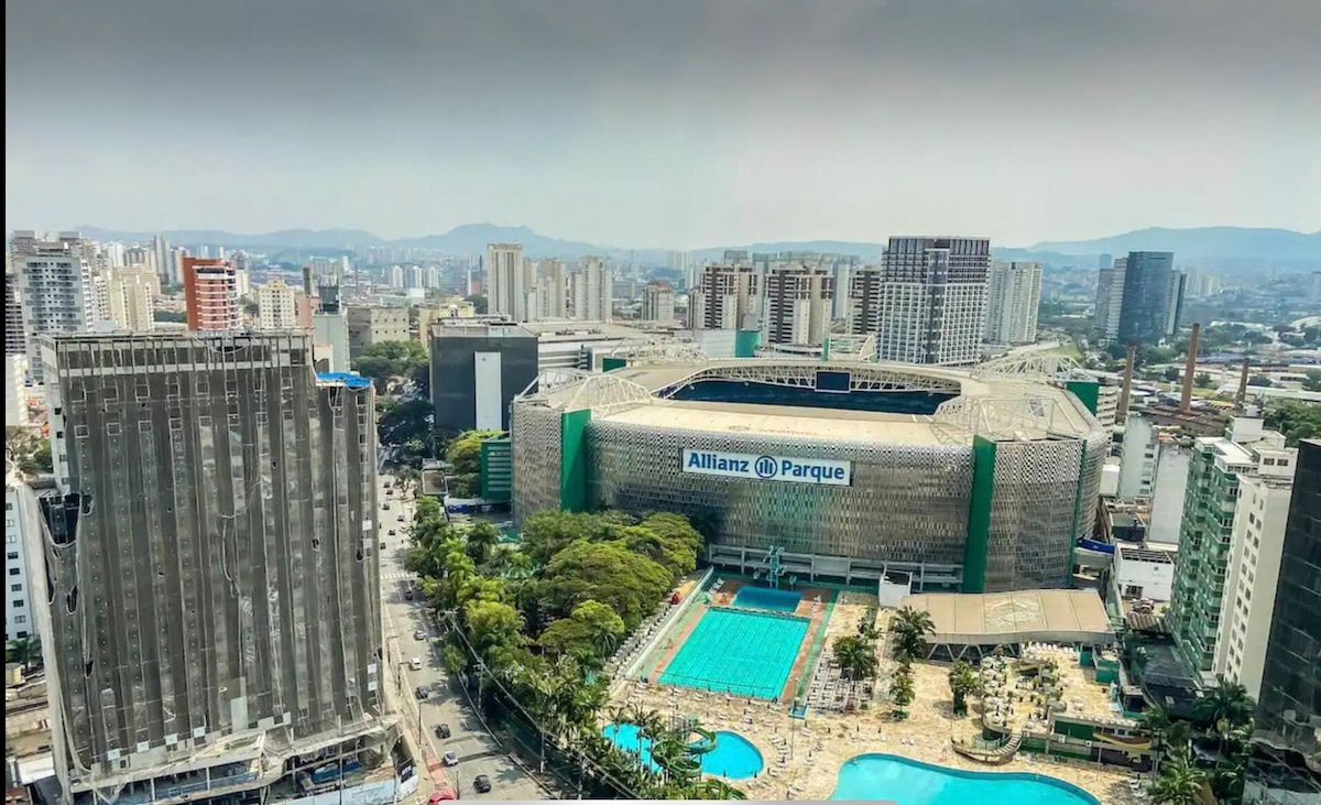Com vaga de Garagem , Apto novo e muito aconchegante, Curta uma experiência elegante neste lugar bem-localizado, próximo ao Allianz Parque, 3 minutos a pé . Ao lado de diversos comércios, Shoppings, Teatro, meios de transporte, parques, pontos turísticos. Aproveite um apartamento moderno com Vista para o Allianz, cozinha compacta e completa, cama queem além de outras comodidades. Tenha a segurança de um condomínio com portaria 24h, lazer super completo. Mais que hospedagem, uma experiência .