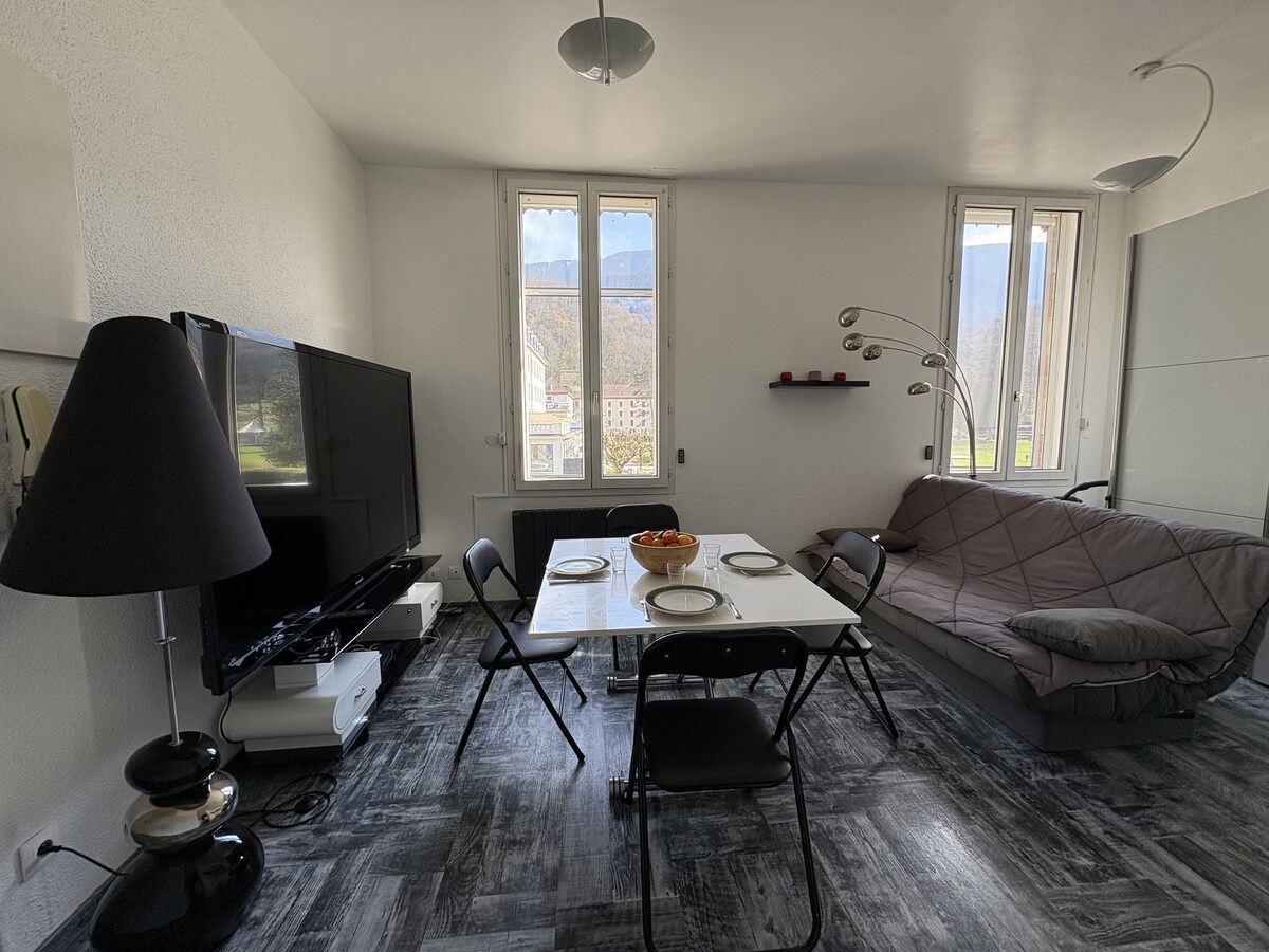 🌛 Liniște non-stop 🍾 Bucură-te de o reducere de 10% de persoană la braseria „Le Grand Café des Deux Mondes”, situată la intrarea în clădire, rezervând acest studio! Bine ai venit în acest studio renovat în 2024, situat în Place Grenette, inima centrului orașului Grenoble, aproape de absolut toate facilitățile 🥂 Cazare cu aer condiționat: setează temperatura optimă de la 17°C la 25°C. Articole de toaletă furnizate (hârtie igienică, prosoape, săpun) și bucătărie dotată cu cafea și ceai gratuite