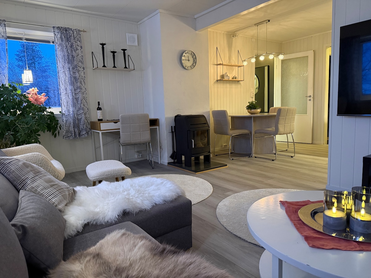 Apartament cu sock cu intrare privată, dormitor, living, duș, saună și toaletă. În living există un frigider, un cuptor cu microunde și un ceainic. În living există, de asemenea, o canapea extensibilă care poate fi folosită ca pat. Pentru persoanele care suferă de alergii, te rugăm să reții că există un câine la etaj. 5 minute de mers pe jos până în centrul orașului, cu stație de autobuz, magazine și restaurante. 10 minute până la Finnmarkshallen, UiT și zonele de drumeții. Parcare pentru parcare la proprietate. Bicicleta și motocicleta pot fi parcate în garajul încuiat. Încărcător pentru mașini electrice în zona imediată.
