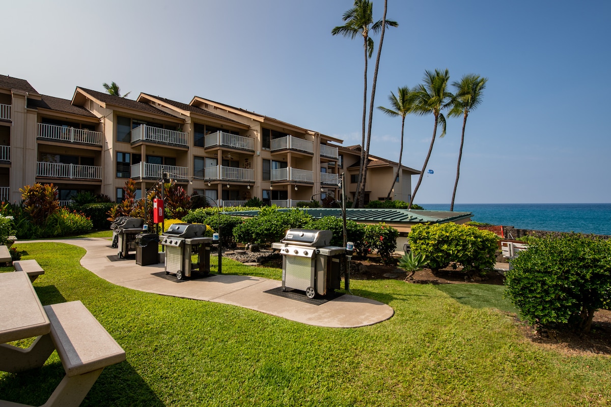 Kick back and relax at this renovated condo with partial ocean views, an oceanfront saltwater pool, and lusciously landscaped grounds. This air-conditioned unit boasts a central location just 1.3 miles from the heart of downtown Kona. Conveniently located between downtown Kona and the world-famous Magic Sands beach, this is the perfect home base to explore everything Hawaii Island has to offer. Enjoy the shared BBQs and private sandy beach area as you soak up Kona's sensational sunsets.