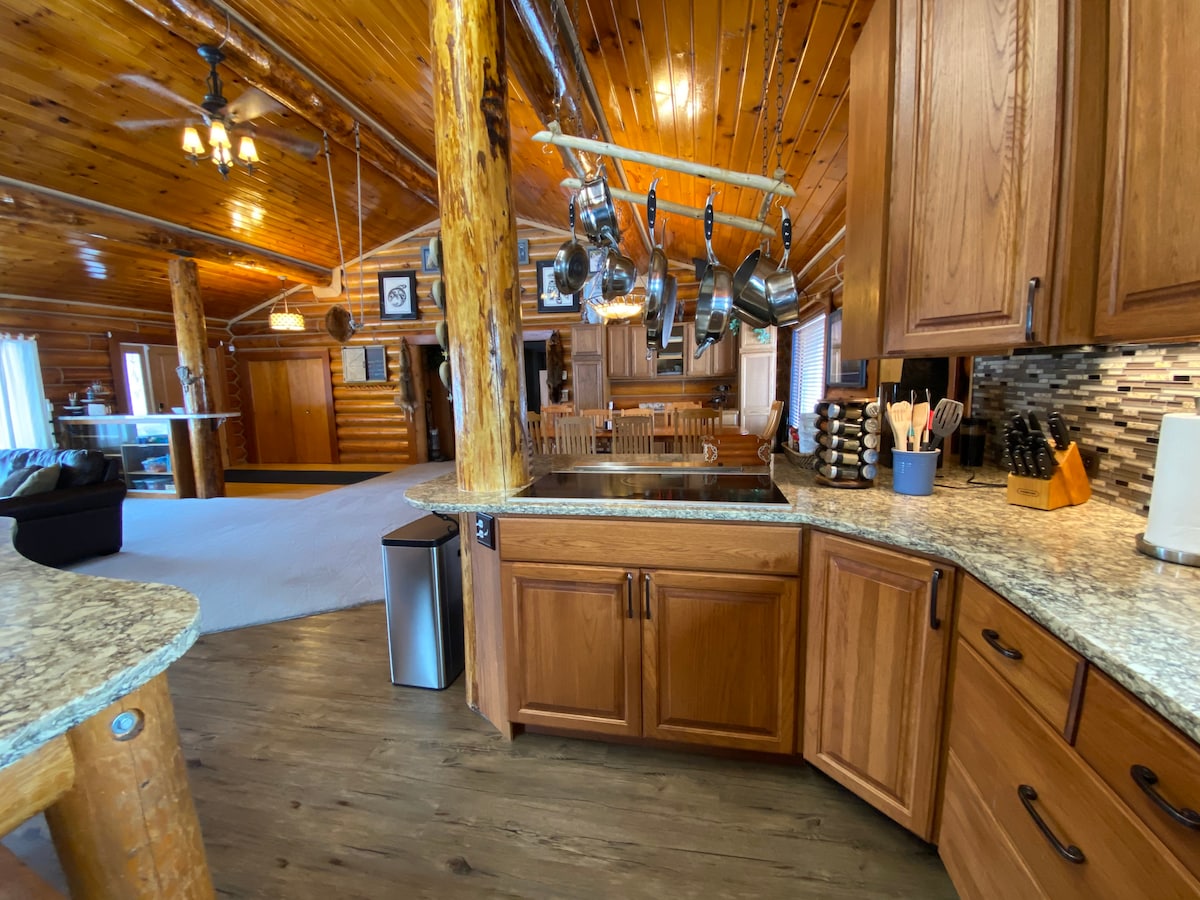 Cabană liniștită situată pe frumoasele dealuri din Alaska. Aproape de oraș, dar suficient de departe pentru a simți experiența din Alaska. Zonă perfectă pentru a vedea uluitoarele lumini nordice din Alaska. Bucătărie completă și baie privată completă. Foarte spațioasă, cu un pat matrimonial, un pat supraetajat complet/dublu și o canapea extensibilă. Locuri de dormit pentru 5 adulți sau 4 adulți și 2 copii. Aproximativ 15 minute de mers cu mașina de centrul orașului Fairbanks. Aleea spre cabană poate necesita un vehicul cu tracțiune integrală și anvelope de iarnă în timpul iernii