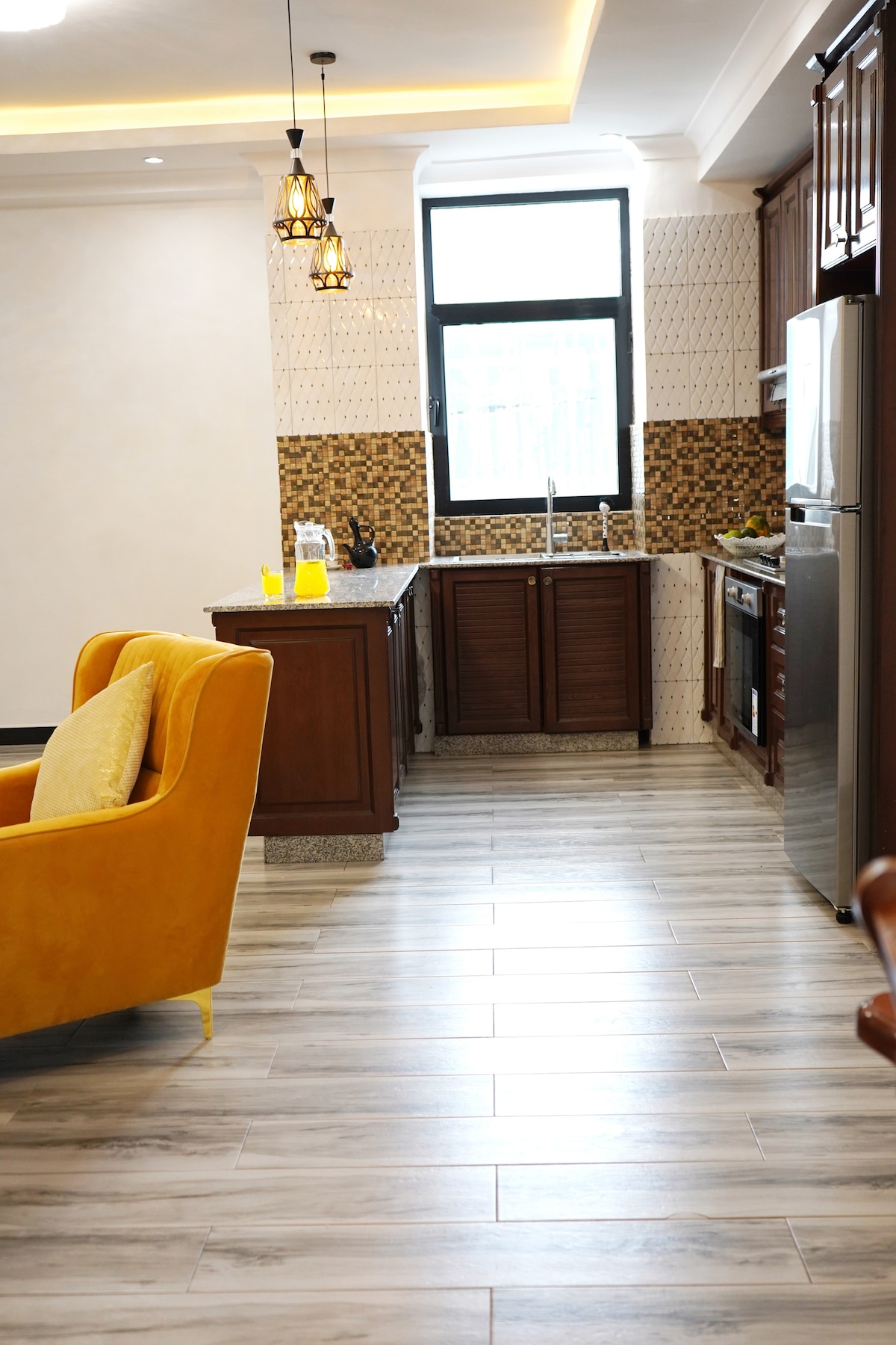 In the heart of Addis Ababa’s trendy Kazanchis neighborhood, you will find our charming 2 bedroom apartment that offers a blend of modern comfort and Ethiopian charm. With its stylish decor, fully equipped kitchen, and accessibility to restaurants, main attractions, and everything else you might need, it's the perfect base for exploring Addis Ababa while being centrally located for any event.