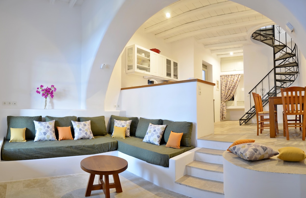 Apartament tradițional construit și decorat în inima satului medieval Chora. Oferă un balcon cu priveliști uimitoare asupra satului, morile de vânt la mare și o verantă pentru odihnă și intimitate sub castel