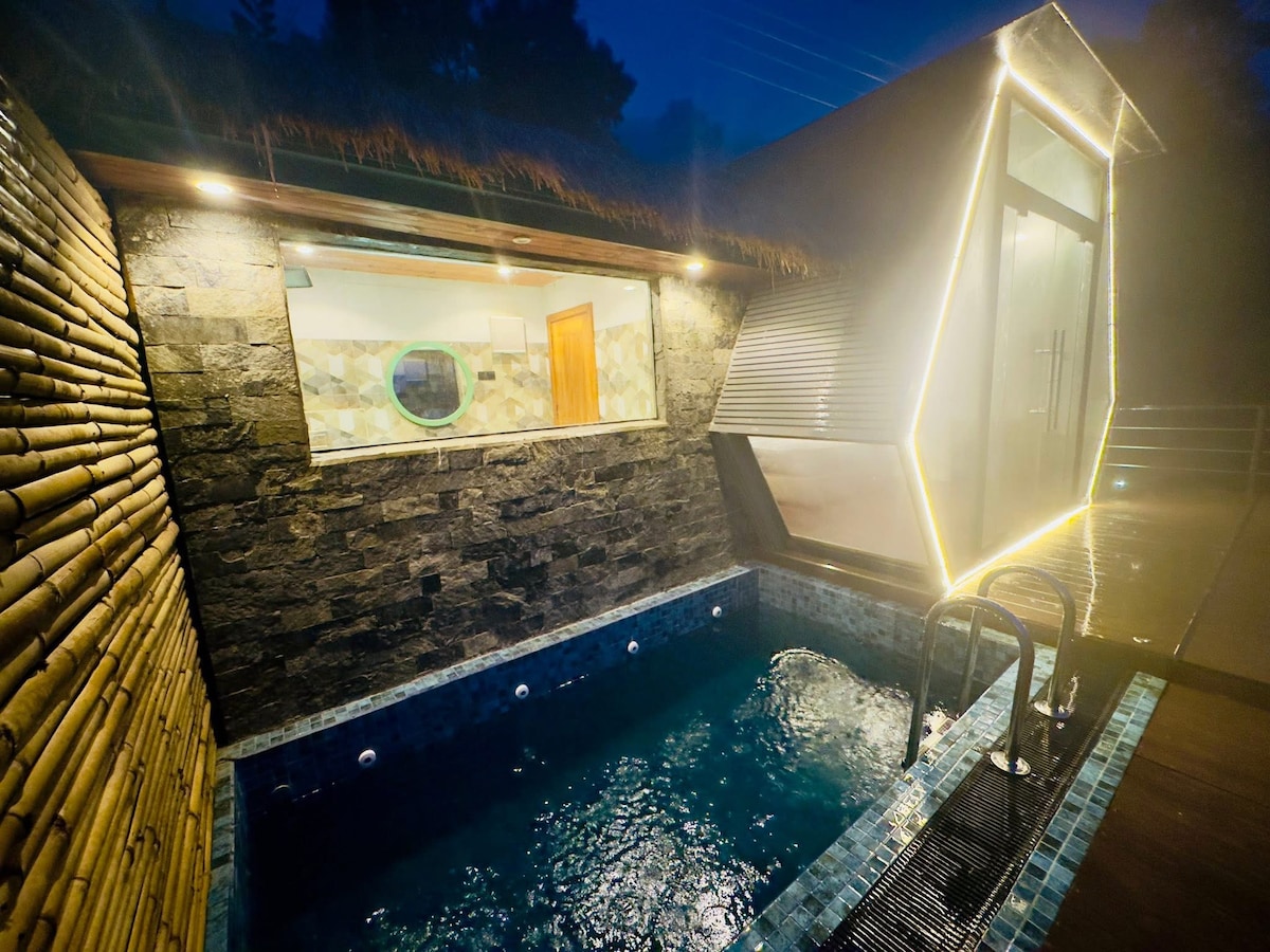 O cabană cu cadru și piscină infinită - cabane de ceai