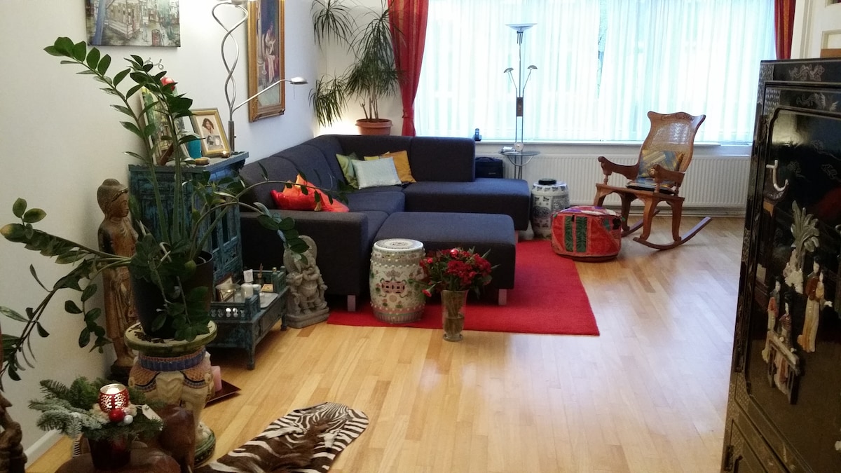 Vino și stai într-o casă plutitoare! Oferim o casă de oaspeți privată cu o sufragerie/living mare (inclusiv o canapea extensibilă confortabilă pentru 2 persoane) și o toaletă separată la etaj. La parter, un pat matrimonial cu vedere la apă și baie cu duș și cadă mare. O terasă în față cu mai multe locuri și o bancă leagăn. Situat pe o stradă verde frumoasă, foarte aproape de centru: 2 stații cu tramvaiul sau 15 minute de mers pe jos de gara centrală. Nu servim micul dejun, dar oferim multe produse de bază pentru a-ți pregăti propriul mic dejun.
