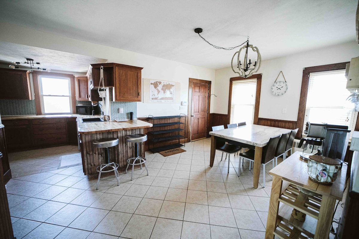 Ferma victoriană din 1880 Șederea într-o „epocă a trecut”. Dormitor privat cu 2 dormitoare. Podele originale din lemn de esență tare. Uși de buzunar originale. Persoane 6. Are living, bucătărie, zonă de luat masa 1 baie cu cadă , zonă de studiu. Oraș fermecător, populație 4000+. casă fără fum. Intrare privată fără cheie. Ușa albastră. Wi-Fi gratuit, cablu, roku. Are aparat de cafea keurig cu cafea gratuită, vase, oale, tigăi, tacâmuri, plită de gătit nu-wave, prăjitor de pâine, cuptor cu microunde, frigider, pachet de joacă. Paturi queen-size. W & D private.