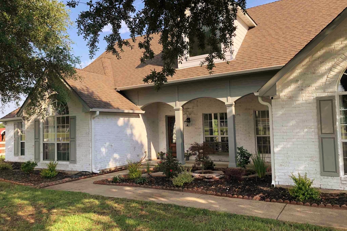 11 crame locale/5* Restaurante/Choctaw Casino/45 de minute până la Dallas Această locuință recent renovată le are pe toate. 5.0 comentarii! Fermă nouă mare de 3K sqft pe o fermă de cai de 14 acri, cu o priveliște uimitoare. Plan al etajului deschis, șemineu dublu la patio/piscină în aer liber. Cadă cu hidromasaj, bucătărie gourmet/grătar cu gaz/groapă de foc și dormitoare frumos decorate. O mulțime de intimitate. Vizitează în apropiere Mckinney Sq. pentru restaurante/baruri de top, magazine sau crame locale!