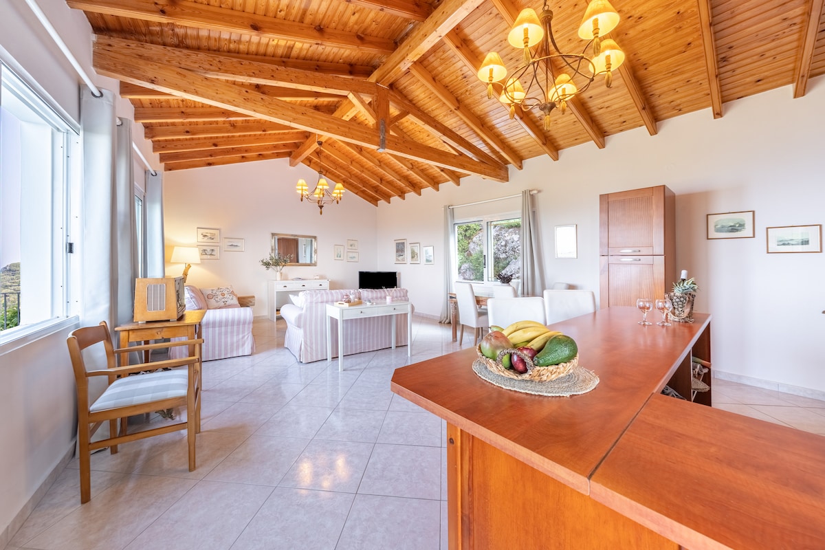 Locuința perfectă pentru a te bucura de priveliști panoramice încântătoare la mare și de o alegere ideală de cazare, în inima insulei, pentru cei care doresc să savureze frumusețea liniștită și naturală a Corfu pe tot parcursul anului. Acesta cuprinde un living spațios și o bucătărie complet utilată, 2 dormitoare, 1 baie și aproximativ 100 de metri pătrați de terasă/verandă cu vedere la orașul Corfu și la Marea Ionică. Te rugăm să reții că se recomandă o mașină de închiriat, deoarece zona nu este deservită de transportul public obișnuit.