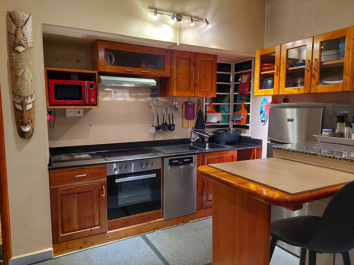 Acest apartament fermecător cu două dormitoare este cocoțat pe un deal, la doar 10 minute de mers pe jos de aeroport, și oferă priveliști uimitoare ale Aeroportului Internațional Seychelles. De la balcon, te poți bucura, de asemenea, de priveliști pitorești ale insulelor Praslin și La Digue. Indiferent dacă te afli într-o ședere de scurtă durată, te confrunți cu o întârziere a zborului sau te bucuri de o vacanță, apartamentul este ideal. Ești la doar 15 minute de mers cu mașina de plajă și aproape de frumoasa piață Victoria, unde poți explora pește proaspăt, condimente și cultură locală.