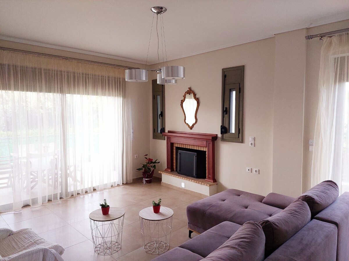 Casa noastră este la 22 km de orașul Chalkida, la o jumătate de oră cu mașina. Aeroportul din Atena este la 115 km distanță, o oră și jumătate cu mașina. Plaja Politika este la numai 15 minute, 11 km. Poți cumpăra mâncare și provizii la Psachna, la 10 minute (6 km) de casă. O piscină privată este, de asemenea, disponibilă (adâncime minimă 1,2 m, adâncime maximă 2 m). Este necesară o mașină. În timpul sezonului de iarnă te așteptăm în căldura șemineului cu lemne de foc gratuite. Piscina este deschisă începând cu 17 aprilie!!