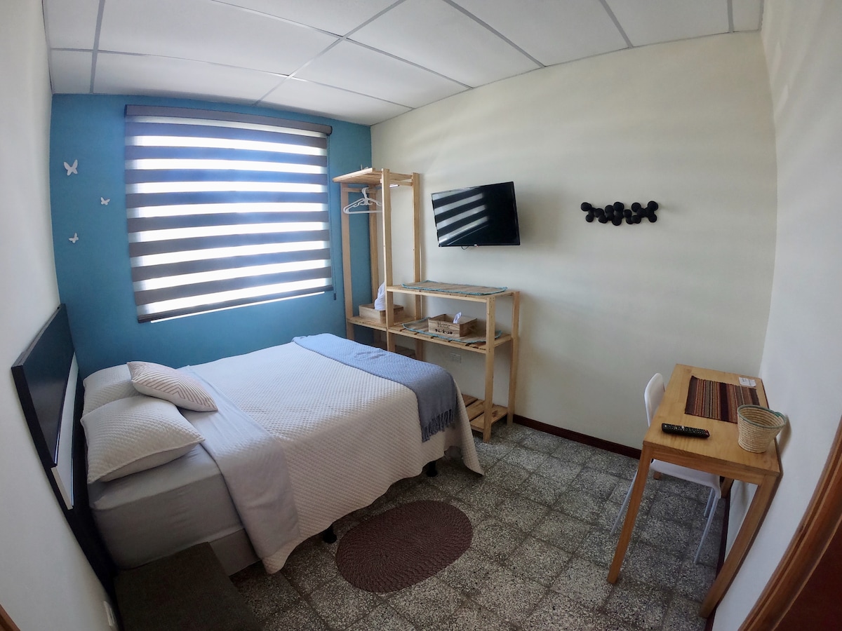 Mini apartament PRIVAT confortabil cu 1 pat, situat într-o zonă rezidențială centrală, privată, liniștită și sigură din San Salvador. Baie proprie, aer condiționat în cameră, Wi-Fi, Smart TV cu Netflix, dulap, frigider, 1 parcare în aer liber etc. Proprietatea este situată în apropierea stadionului Cuscatlán și la 10 minute de centrele comerciale, cum ar fi La Gran Vía, Multiplaza, El Salvador al lumii și la 5 minute de Starbucks, restaurante, farmacii etc.