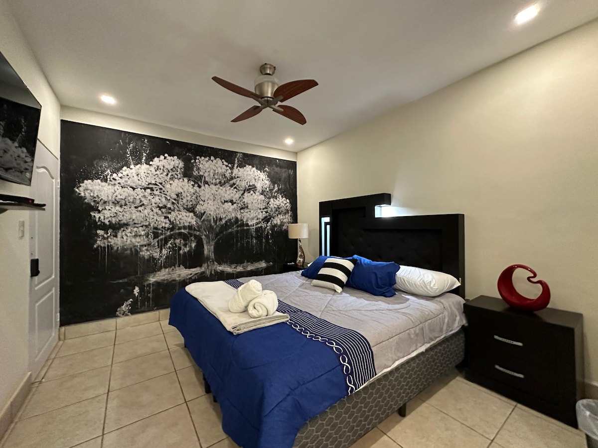 Moderno estudio en la ciudad de Santa Tecla, a corta distancia de playas (Surf City, El Sunzal), volcanes (El Boqueron), centros comerciales (Multiplaza, La Gran Vía, Plaza Merliot), Zona Rosa, San Benito, Centro Histórico de San Salvador y mucho mas. Equipado con todo lo que necesites para tus vacaciones o viaje de negocios. Para esos días en los que cocinar no este en tus planes, hay muchas opciones de comida a distancia caminable. Con parqueo privado, cocina, lavadora/secadora, internet y tv.