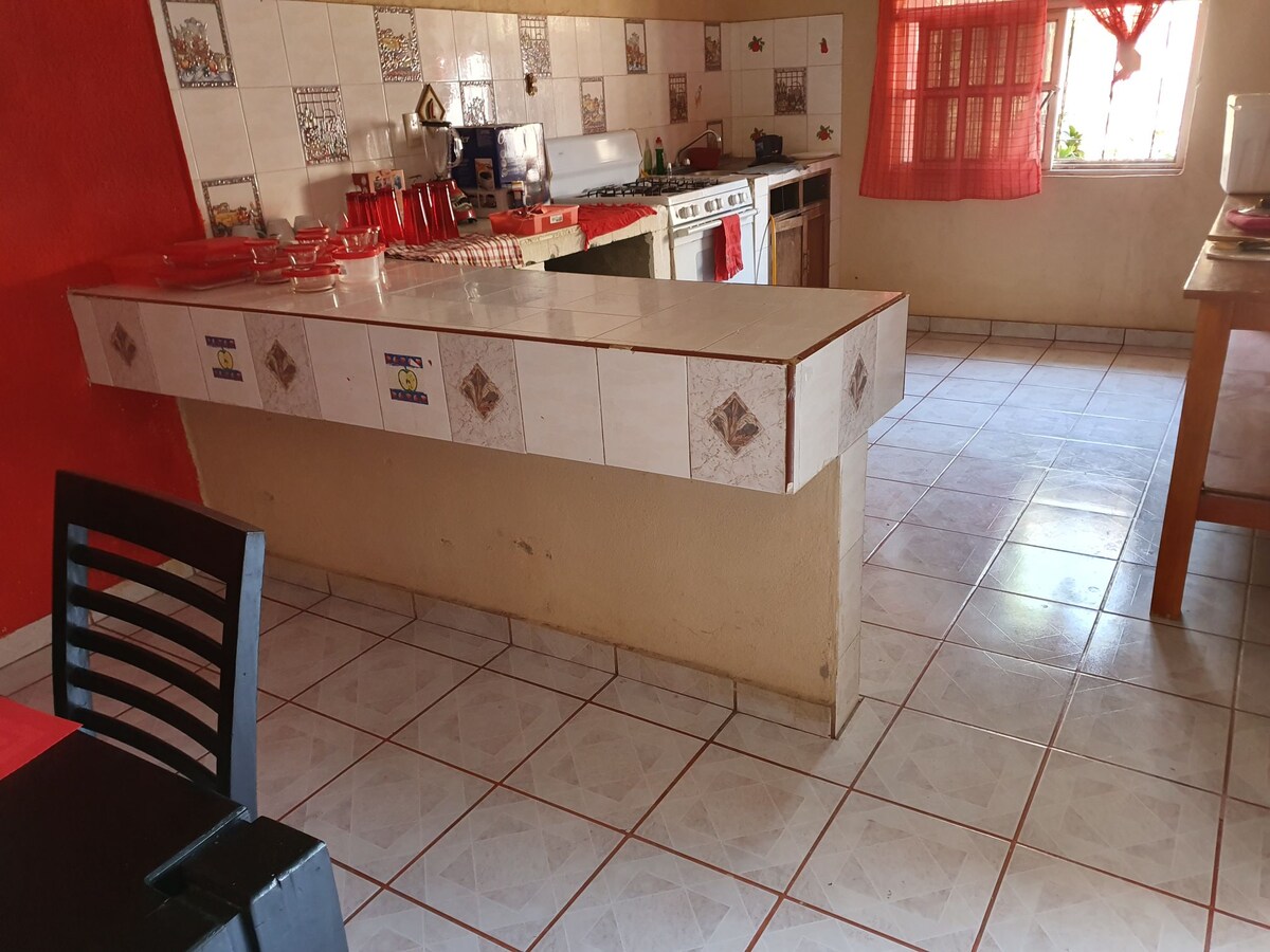 Casă practică și echipată în Apatzingán, ideală pentru cupluri sau companii. Distrează-te în această cazare elegantă. Casa este situată central, poți merge pe jos până în centrul orașului Apatzingán, zona este liniștită, vei avea farmacii, spitale, baruri, magazine comerciale și mai multe facilități foarte aproape. Mini split, detectoare de fum și de gaz, mașină de spălat, boiler, Netflix, parcare la fața locului.