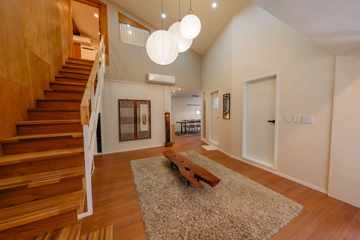 住宅(주택) 𓍊𓋼.⋆ 나무가 사는집 북수원의 조용한 주택가에 위치하고 있습니다. 호스트가 나고 자란 따뜻한 추억이 가득한 단독주택이며 2층에는 부모님이 여전히 거주하고 계십니다. 40년된 구옥의 일부를 리모델링 하였고 숙소에 있는 모든 원목가구는 나무공방을 운영하고있는 남편이 제작하였으며, 가구 쇼룸 겸 저희가족의 별장이기도 한 프라이빗 공간을 많은 사람들이 경험하실 수 있도록 숙소로 오픈하게 되었습니다. 여행객들에게는 낯선 도시인 수원, 저희 숙소에 오신 모든분들이 편히 머무셨으면 하는 마음에 섬세히 준비하였습니다. . . . 안방과 거실 모두 남서향을 바라보는 창이라 쨍한 오후햇살이 들어올때도 예쁘지만, 비오는날의 습도높고 어둑한 분위기가 아주 운치있는 레트로 감성 숙소 입니다. ☾ 밤이 매력적인 이 곳, 묵직한 독채 주택에서 편안하게 휴식하시기를 바랍니다. ⠀ ⠀ 𓂃