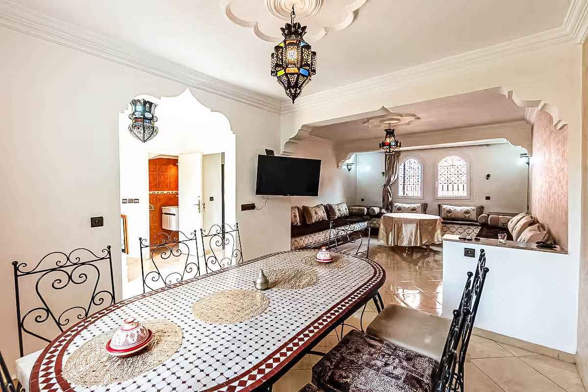 Welcome to your modern family villa in Agadir! Located in the calm and residential area of Hay Charaf, this spacious 3-bedroom villa offers the perfect balance between comfort, design, and location. Only 10 minutes from Marina Agadir and Souk El Had, you’ll enjoy easy access to the city’s best attractions while staying in a peaceful and private home. Perfect for families and groups, the villa is fully equipped for short and long stays, with a stylish modern décor and all amenities needed for