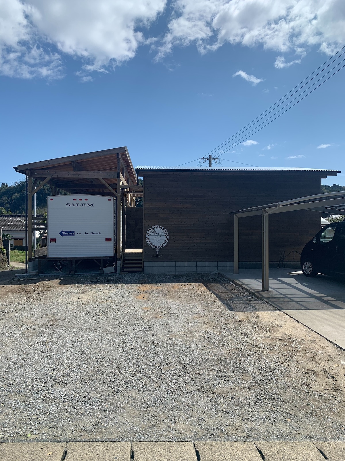 Aoshima93 青島の奥にある隠れ家まるまる1棟貸し切り、トレーラーハウス、デッキはチルスペース