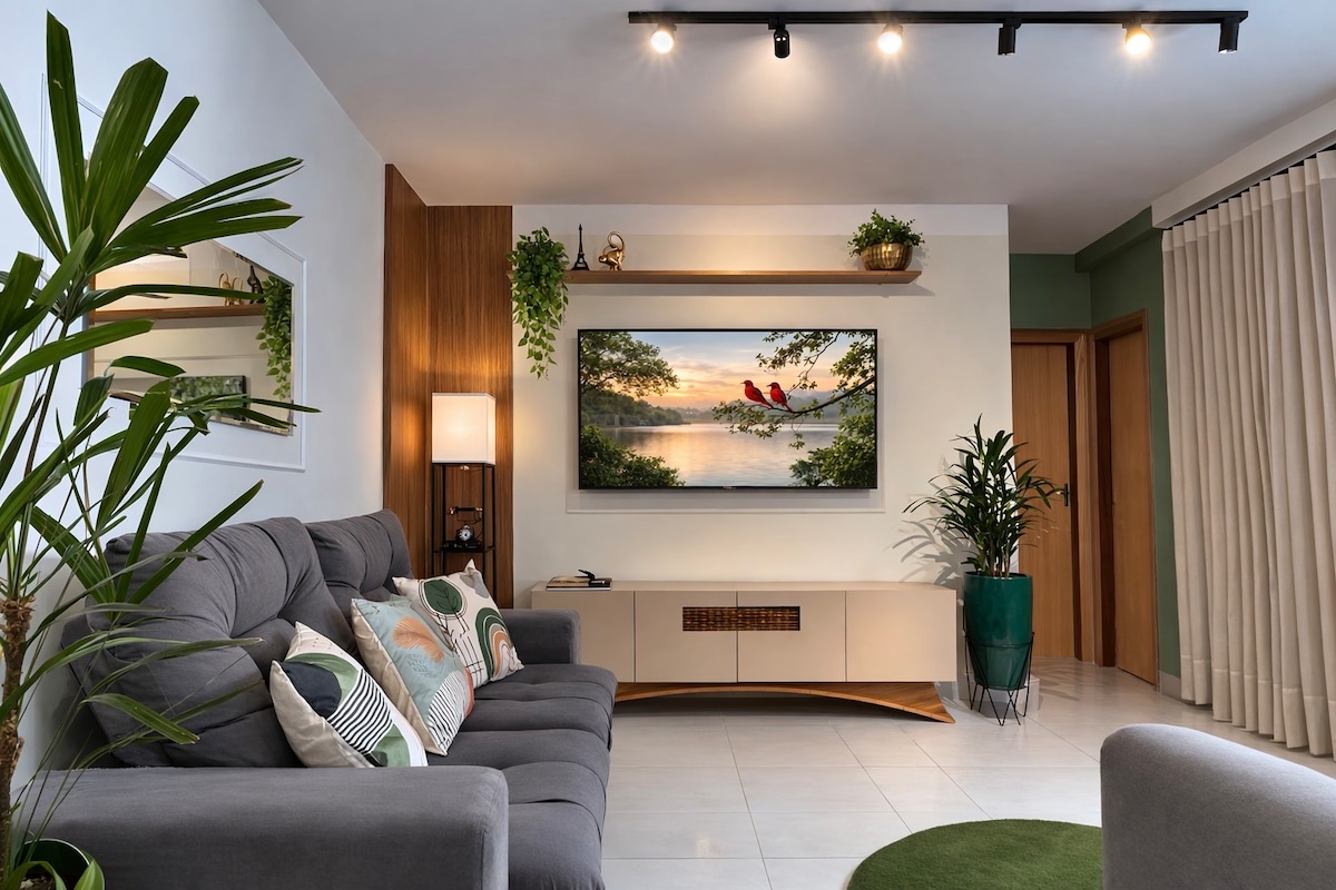 Bucură-te de un apartament fermecător, complet echipat și frumos decorat în inima Setor Bueno. Acesta are două dormitoare confortabile - unul cu un pat matrimonial mare și altul cu un pat dublu. La doar 350 m de Vaca Brava Park și Goiânia Shopping, pe aceeași stradă cu Buena Vista Shopping, vizavi de o brutărie și o piață și la 3 minute de Bluefit Gym. Înconjurat de farmacii, cafenele, baruri, restaurante, spitale și tot ce e mai bun în Goiânia. 🌿✨