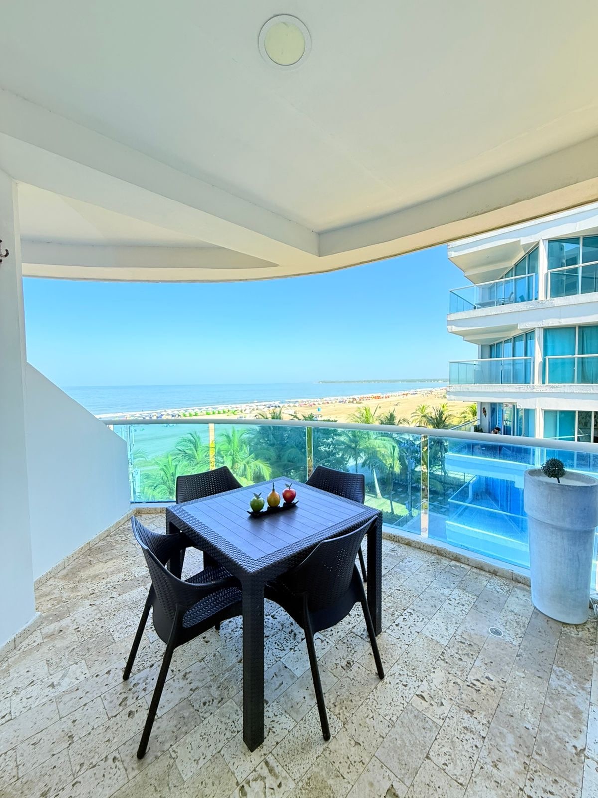 Exclusive apartment in a beachfront building with direct access to the sand. Just 7 minutes from Cartagena’s historic center, perfect for enjoying the Caribbean. Bedroom with a Queen bed + sofa bed (180x110 cm) in the living room 🛁 2 full bathrooms 🌅 Private balcony with hammock 🏊 2 pools (one beachfront), jacuzzi, and sauna 💪 Gym, children's area, and private parking 📶 300 Mbps Wi-Fi – ideal for remote work 🍽️ Close to restaurants, bars, and supermarkets Baby crib available upon request