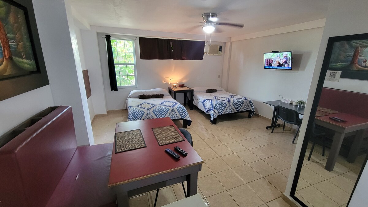 Situat strategic la 5 minute de cele 3 drumuri de ieșire către atracțiile turistice. La 2 străzi distanță de chedrahui. 6 străzi de la cinematografe Se află într-o zonă rezidențială Wi-Fi Parcare Acoperișuri Aer condiționat Fără chei (furnir electronic) Apă caldă automată. (deschizi doar cheia și vei fi gata) Acces securizat și complet INDEPENDENT Depozitează bagajele dacă ajungi foarte devreme Intrări iluminate toată noaptea. Bucătărie cu ustensile.