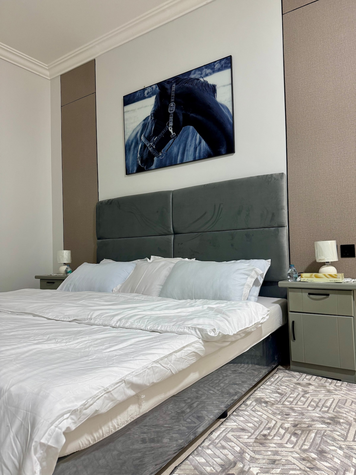 Apartament de lux și elegant, într-o clădire nouă și o locație privilegiată, cu intrare proprie, pentru a petrece o noapte liniștită, caracterizată prin designul său magnific, dotat cu toate detaliile frumoase pentru a petrece cele mai frumoase momente Se compune dintr-un dormitor, un dulap de depozitare și un purificator de aer cu vedere la o stradă plină de viață și un salon deosebit dotat cu internet gratuit și un televizor de 65 inch cu soundbar Samsung cu abonament Netflix activat și YouTube și diverse programe Bine ați venit, dragi oaspeți.