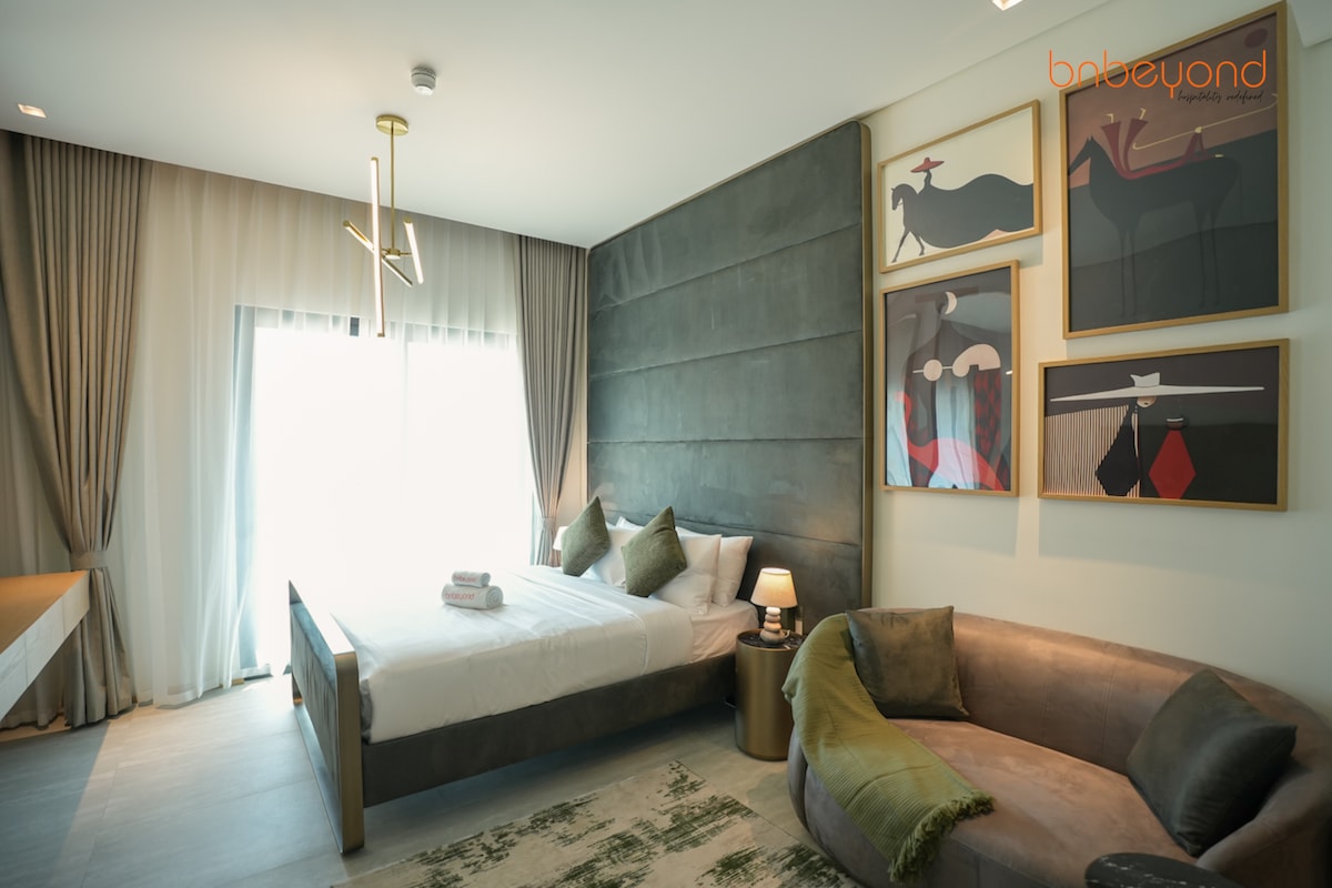 Bine ai venit la refugiul tău liniștit din Artesia, DAMAC Hills. Acest studio elegant oferă vedere uimitoare, neîntreruptă la terenul de golf, perfect pentru dimineți relaxante și seri liniștite. Mobilat cu grijă, cu un pat confortabil, baie modernă, chicinetă complet utilată și Wi-Fi de mare viteză, este ideal pentru cei care călătoresc singuri sau pentru cupluri. Bucură-te de facilități în stil stațiune, acces ușor la parcuri, cafenele, mall și o evadare calmă, verde, într-o comunitate închisă, sigură și liniștită, concepută pentru oaspeți de toate vârstele.