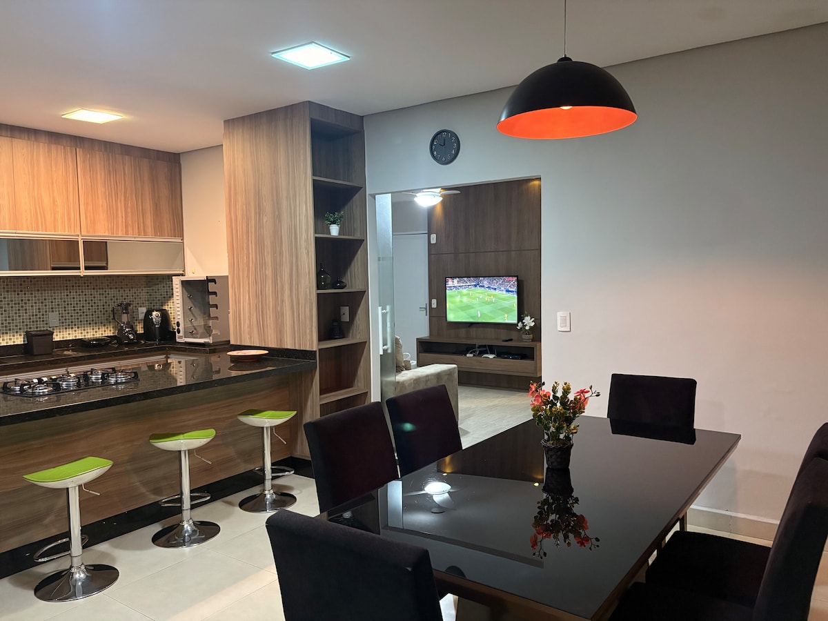 Bucură-te de o experiență elegantă în acest spațiu situat central. Cdhu condominium, super calm, cu poartă electronică și parcare acoperită. Spațios, cu mobilier și aparate noi, cu toate ustensilele pentru șederea ta. Ventilatorul din toate camerele și un aer condiționat de 12.000 btus fac confortul acestui apartament. Internet Fiber Vivo. La 5 minute de Araçatuba Shopping și la 7 minute de centrul orașului, la 9 minute de locul de desfășurare a expoziției.
