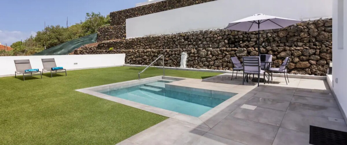 Vila ta privată cu jacuzzi imens în aer liber și piscină de plonjare cu vedere uimitoare la ocean și teide de 180º. Distanță de mers pe jos până la coastă, piscine naturale, toate fotografiile au fost făcute aici Vilă unică cuibărită în grădină ecologică vulcanică luxuriantă de 400m2. Cartier exclusivist pentru a te bucura de liniște, păsări, șopârle și kestrels, aproape de restaurante la modă, crame și cocktail baruri. Perfect pentru a te relaxa, a face plajă, a face grătar, a te bucura de apusul soarelui de la jacuzzi sau piscină. 5 minute până la autostradă pentru a explora insula.