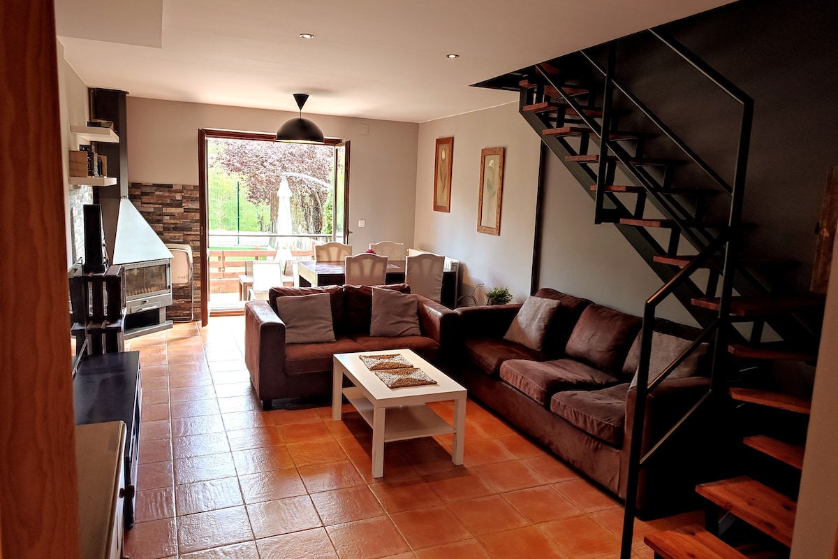 Duplex în ENTREPINOS Parterul are o toaletă, living cu canapea extensibilă dublă de 140, TV LED de 43"și bucătărie independentă cu chicinetă. Etaj superior 1 dormitor 150 dormitor pat, al doilea dormitor cu două 90 de paturi și baie mare cu cadă. Terasă privată cu grădină de 45 m, cu vedere magnifică neobstrucționată la Collarada Rafturile și prosoapele nu sunt incluse Citește regulile casei