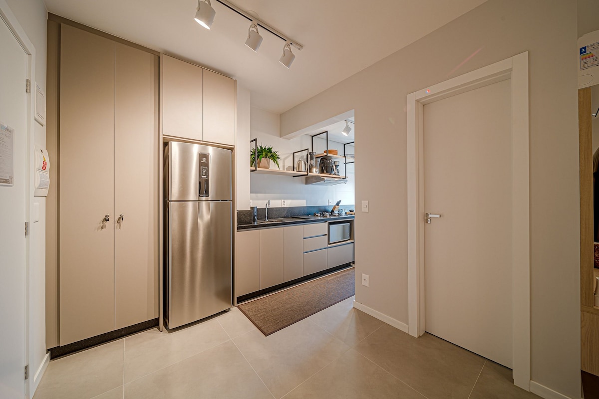 Abrace a o aconchego neste lugar tranquilo e bem-localizado. Um apartamento aconchegante, com tudo que você precisa para tornar sua experiência ainda mais agradável. Totalmente mobiliado e com estrutura em um prédio pensado para o conforto. Edifício com horta, bar, mercado, bicicleta, garagem, academia, rooftop com piscina e salao de festas. Ambiente perfeito para passeio ou trabalho. Venha viver a experiência em nossas propriedades.