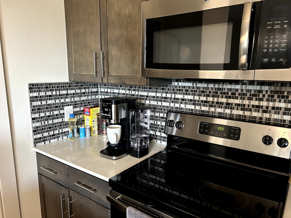 ✨ Modern 1BR în Frisco – Close Shopping, Minutes from The Star! Bucură-te de priveliștea panoramică a balconului și de piscinele în stil resort. Perfect pentru călătorii de afaceri, cupluri sau escapade de weekend. De ce îți va plăcea: ➞ Mergi pe jos până la luat masa, cumpărături, divertisment live și viață de noapte! Balcon ➞ privat cu vedere la oraș și focuri de artificii în timpul nopții Wi-Fi ➞ rapid pentru serviciu sau streaming Zonă de living ➞ luminoasă cu TV Smart de 75" ➞ Bucătărie complet echipată pentru toate nevoile tale de gătit Mașină ➞ de spălat și uscător în unitate cu dotări esențiale