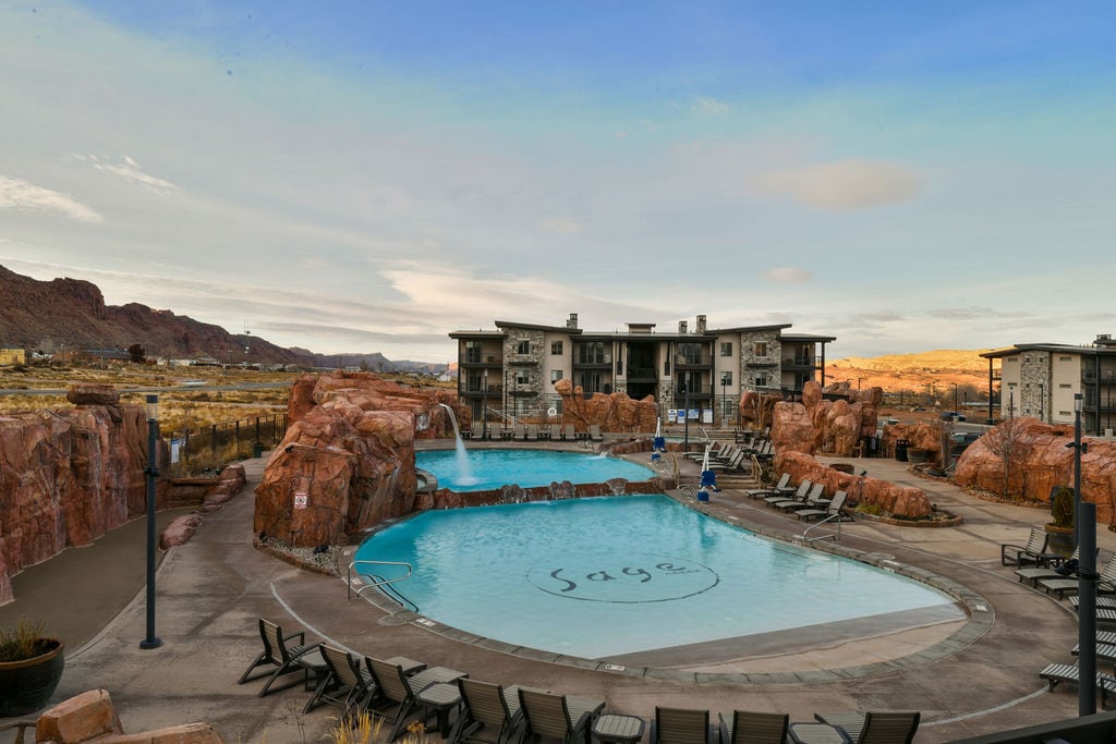 Apartament cu 4 dormitoare în complexul Slick Rock Redcliff (vedere la piscină)