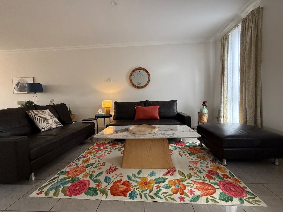 3Br Londra-St casă de oraș tematică. La 1 stradă de centrul orașului, 80 m până la cel mai apropiat restaurant și transport public. A doua unitate liniștită, privată, securizată, pe bloc, cu garaj la distanță și carport. Alarmă, iluminat CCTV + exterior cu senzor. Paturi QS pentru perne x2, lenjerie de pat king-size x2 și foi Ralph Lauren. Aparate electrocasnice Bosch, bucătărie și mașină de spălat/uscător. Televizor Samsung UHD de 65"cu Netflix, Amazon Prime, Disney+, Kayo și Hayu. Canapea din piele Moran, birou și apartament de luat masa Coco Republic. Încărcare gratuită Tesla. Grădină cu ierburi.