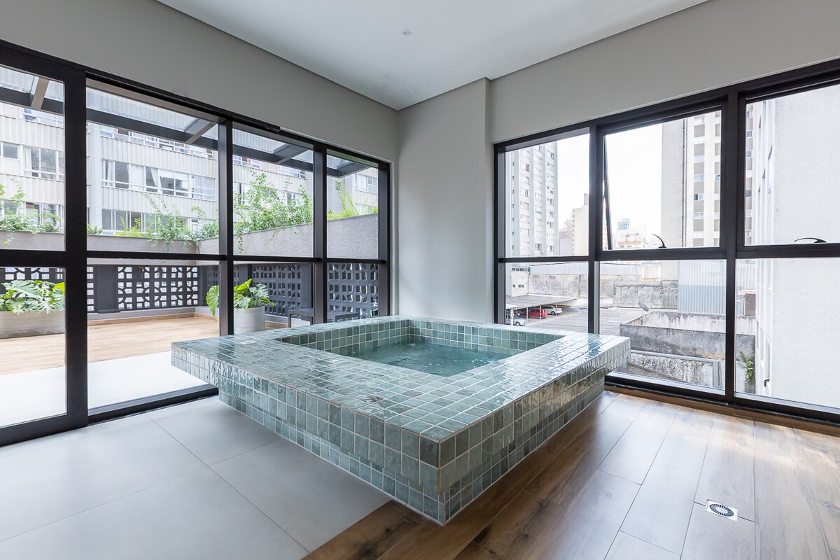 Studio nou, centru în Curitiba + piscină/sală de fitness