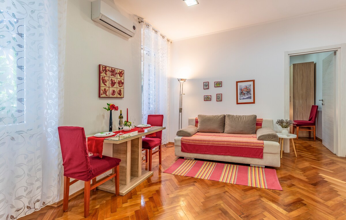 Bucură-te de decorul elegant al apartamentului chiar în centrul orașului. Apartamentul este ideal pentru 2 persoane și constă dintr-un living, bucătărie și sufragerie, dormitor, baie și o mică terasă închisă. Este situată la primul etaj al uneia dintre cele mai renumite străzi din strada Pula - Kandlerova. Echipat pentru o vacanță ideală și bucurându-te de vacanța ta bine meritată.