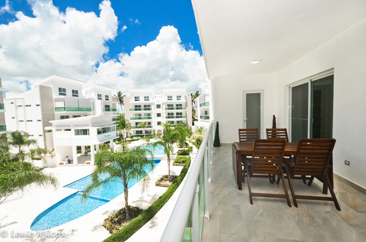 Ședere modernă în Bávaro - 2BR, terasă, grătar, plimbare pe plajă