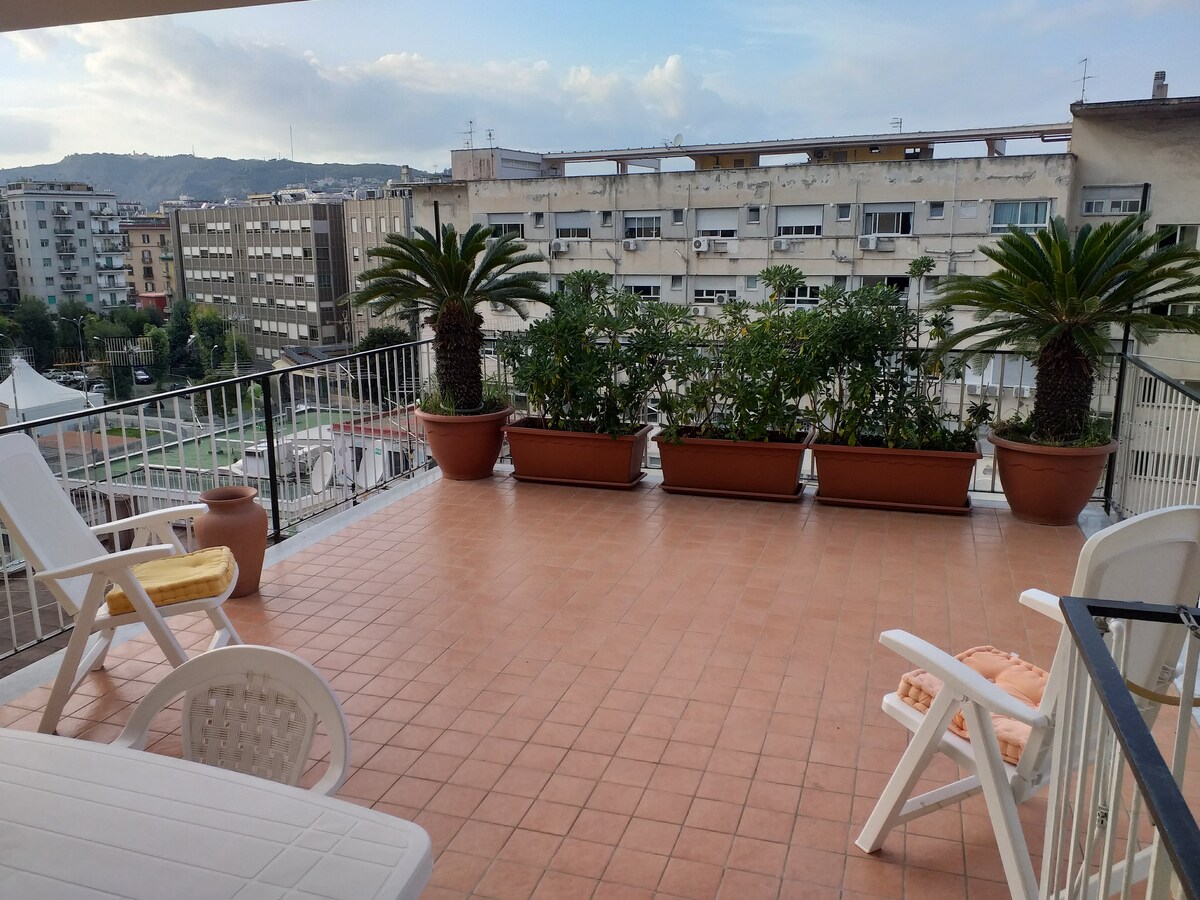 Appartamento incantevole a Napoli città, nella zona del Petraio (antiche scale), situato in un posto tranquillo all'ultimo piano, senza ascensore, con magnifico terrazzo vista mare sul Golfo di Napoli (dal vulcano Vesuvio, all'isola di Capri, alla collina di Posillipo). Ampia e luminosa zona soggiorno con divani e cucina maiolicata, tavoli da pranzo interni e tavolo esterno in terrazza con panorama sul golfo. Zona notte al piano superiore con camera doppia panoramica, bagno e zona studio/relax.