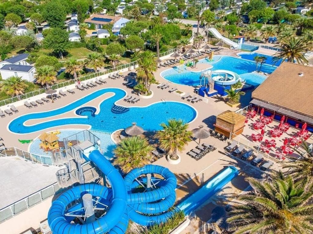Acest camping de înaltă calitate este situat ideal (plajă, iaz, magazine, centru de talasoterapie), are brutărie, supermarket, restaurante, coafor, medic. Vedere a iazului cu păsările sale flamingo și Muntele Canigou, la 30 m de Spania, la 10 m de gară, de aeroportul Perpignan. Multe activități, clubul copiilor cu vârsta cuprinsă între 1 și 15 ani. Are piscina încălzită a parcului acvatic acoperită, tobogan cu pârtii, piscină cu vâsle,SPA, stropire, terenuri de pétanque pinging ping pong zone de joacă.