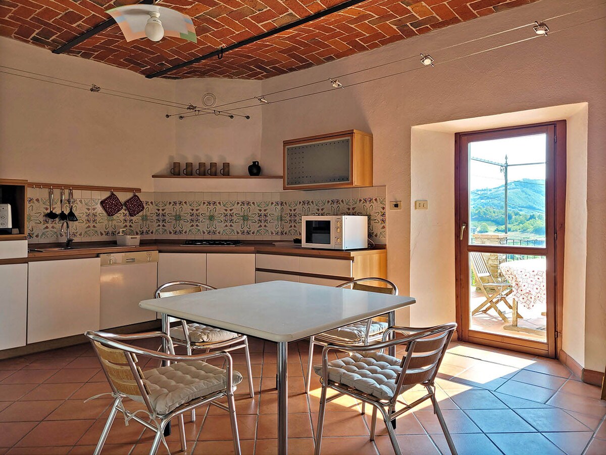 Un apartament într-o casă recent renovată din secolul al XVII-lea, cu vedere la castelul Serralunga d'Alba și la podgoriile din jur, de care te poți bucura din orice cameră sau de la balconul mic care aparține apartamentului. Potrivit pentru o ședere romantică (fără alți oaspeți în cartier), pentru degustări de vinuri (faimoasele podgorii Barolo și crame sunt peste tot în jur) sau pentru o ședere în familie, utilizând bucătăria complet utilată.