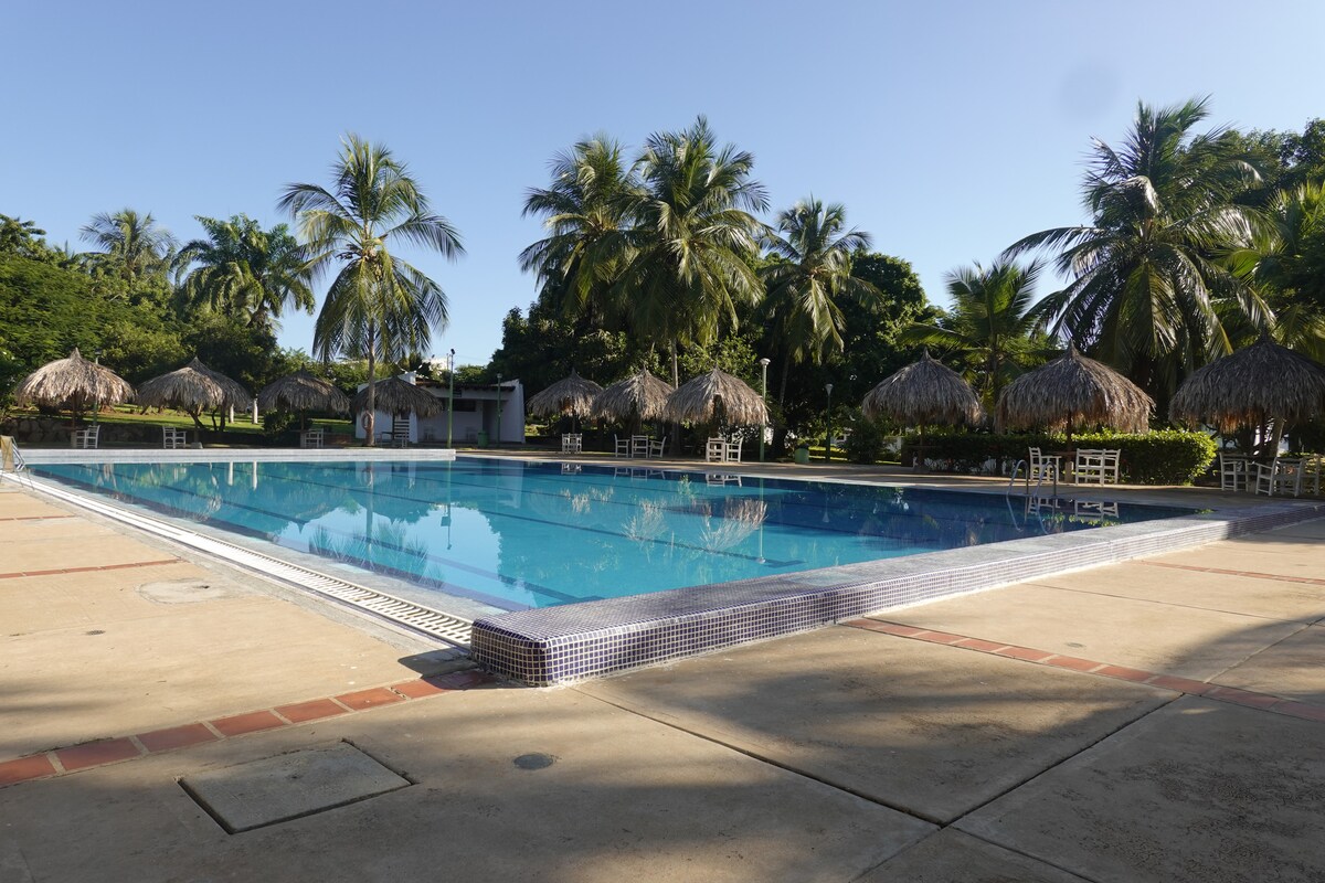 Este apartamento está en mezanina, solo hay que subir 5 escalones y llegas al apartamento, es para 2 personas más 1 adicional ya que cuenta con sofá cama, se encuentra a pasos de la playa, tiene una ubicación genial, ¡será muy fácil planear tu visita! Cuenta con 1 habitacion y 1 baño, tiene agua las 24 horas del día ya que el conjunto cuenta con pozo subterraneo, aire central, tienes tostadora, airfrayer, mini hornito. Querrás venir una y otra vez. super recomendado.