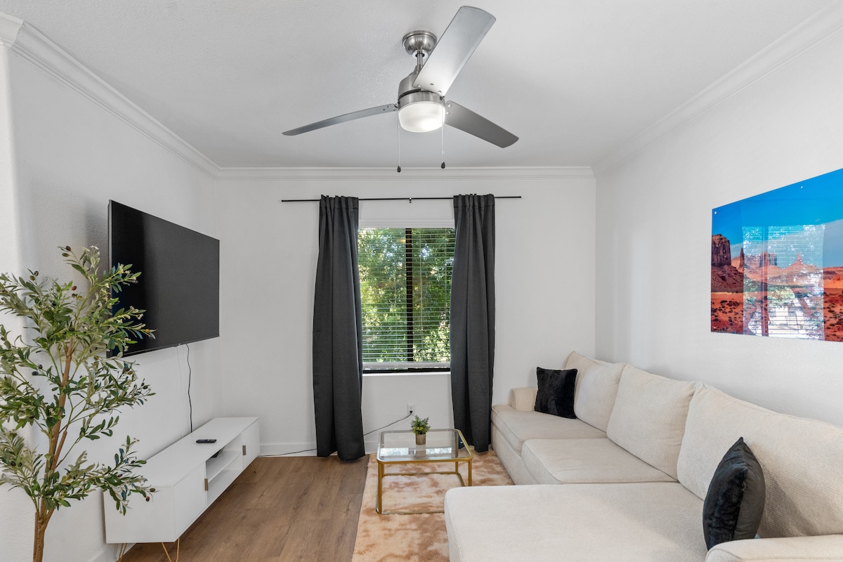 Bine ai venit în apartamentul nostru confortabil și modern cu 1 dormitor din inima orașului Tempe! Relaxează-te într-un pat matrimonial confortabil, bucură-te de terasa privată și profită de parcare gratuită, Wi-Fi rapid și spălătorie în unitate. La doar câțiva pași de Universitatea de Stat din Arizona, stații de cumpărături, mese și autobuz, acest apartament este perfect pentru studenți, cupluri, călători solo sau oricine vizitează Tempe pentru muncă sau petrecere a timpului liber.