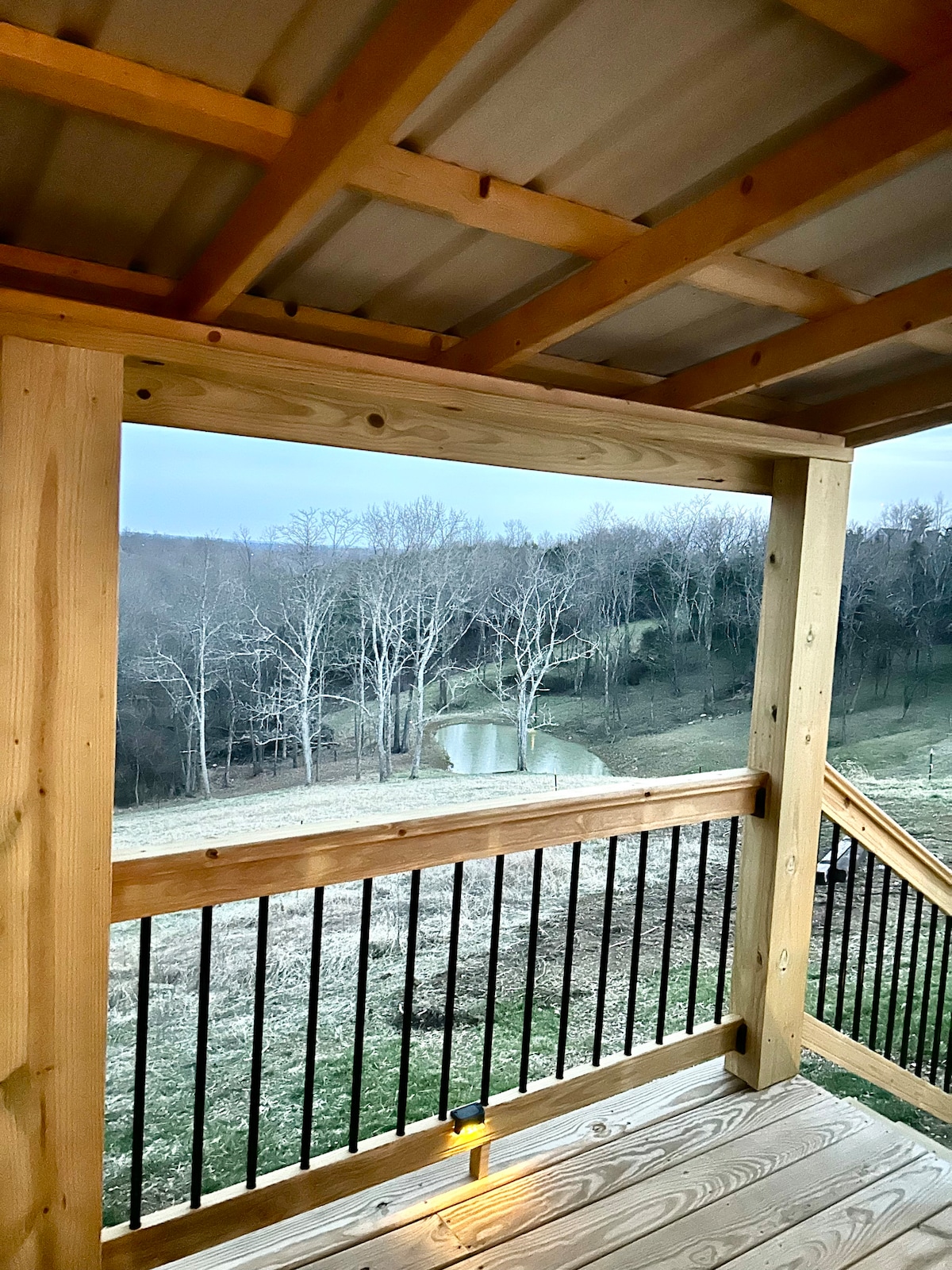 14x40 amish făcut cabană care se află pe o suprafață de 103 acri de teren. Cabana este complet mobilată cu aragaz pe lemne, masă de bucătărie, zonă de bar, chiuvetă și aragaz. Duș și baie de dimensiuni normale. Standuri de cai de interior și un țarc exterior pentru animalele de noapte. Groapă de foc exterioară pentru plăcerea de seară. Mai multe mile de trasee prin câmpuri deschise și creste împădurite oferă aventuri de echitație sau drumeții. Doar o călătorie de douăzeci de minute până la atracția Ark sau parcul de cai Kentucky.