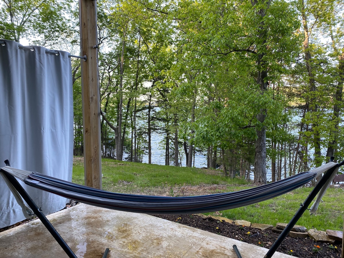 Retrasă dar cu tot confortul. O nouă cabană frumoasă pe râul Meramec. Trei minute de mers pe jos până la râu. Două dormitoare la etaj, fiecare cu paturi matrimoniale. Două băi complete, bucătărie complet mobilată. Două zone de relaxare separate, TV prin satelit și INTERNET disponibile. Două paturi noi. Verandă acoperită pentru grătar sau doar pentru relaxare. Groapă de foc pentru bezele și stele holbezi, drumeții pe privat 50 de acri.