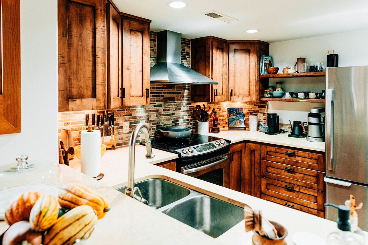 Welcome to the Poni Suite! Every nook of this place, from the zellige tile in the bathroom, to the corner fireplace in the bedroom and the bed outfitted with Brooklinen sheets and Purple mattress, has been designed with your comfort and coziness in mind. Poni Suite is part of La Dea - a collection of 7 casitas built using upcycled vintage furniture and custom craft from local artisans.