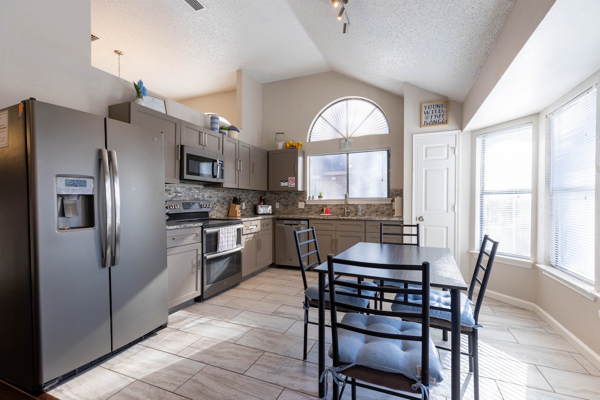 Bine ai venit în refugiul nostru spațios cu 4 dormitoare și 2,5 băi din inima Grand Prairie! aproape de Dallas și Fort Worth. Acesta este situat la doar 7 minute de mers cu mașina de emblematicul stadion AT&T, locuința noastră este perfectă pentru familii, grupuri și pasionați de sport care caută o ședere confortabilă și convenabilă 3 mile de stadionul AT&T, Globe Life Field, Six Flags, parcul acvatic interior epic 12 minute până la aeroportul Dallas Int. 20-22 de minute până în centrul orașului Dallas și Fort Worth, Dallas Mavs, Dallas Aquarium $ Museum