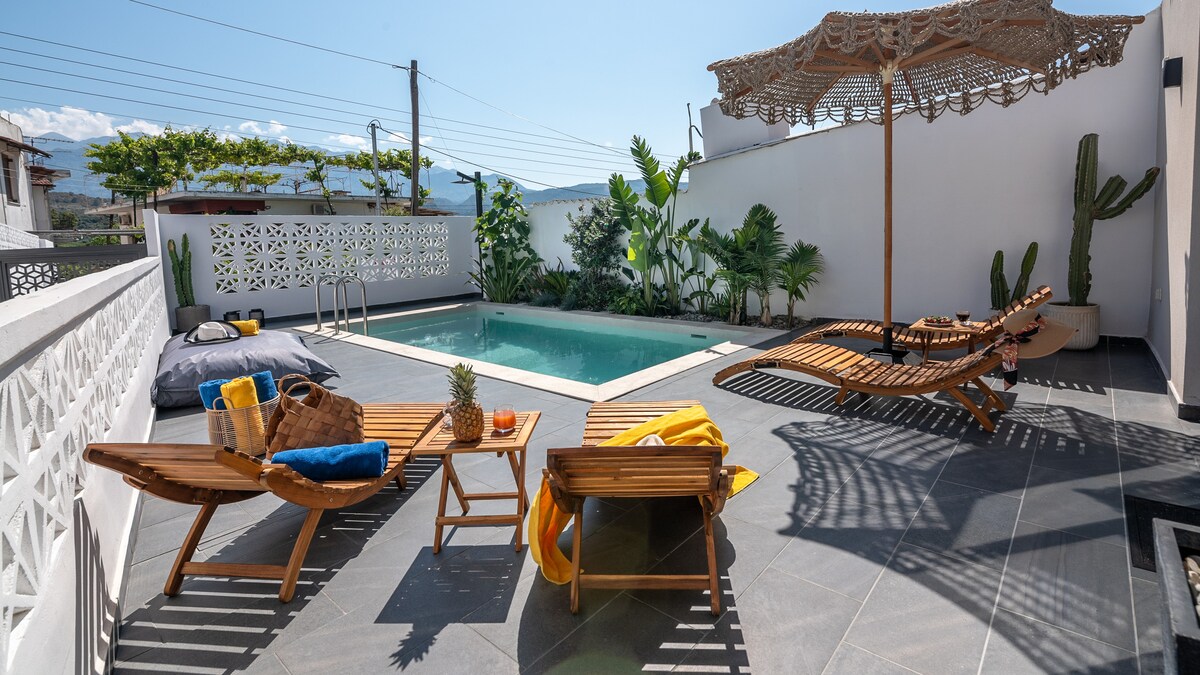 Villa Armenus blends traditional Greek architecture with modern luxury in the village of Armeni. Offering breathtaking White Mountain views, a private pool, and tropical gardens, it’s perfect for relaxation. The villa features two spacious bedrooms, a fully equipped kitchen, and elegant living spaces filled with natural light. Guests can unwind in the hot tub, enjoy outdoor dining, and explore nearby beaches and historic sites. A peaceful retreat designed for comfort and unforgettable moments.