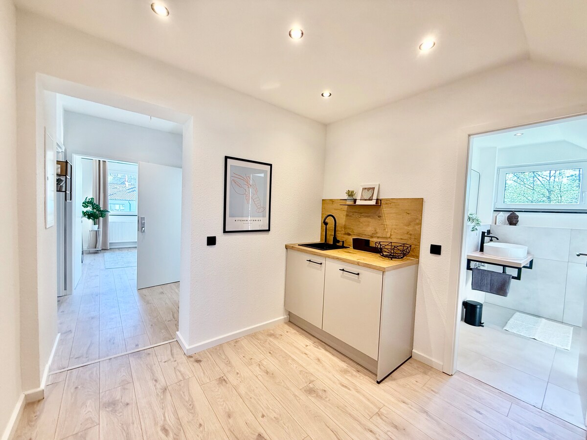 Simte-te ca acasă. Acest apartament elegant de la marginea pădurii este refugiul tău în Sauerland – situat liniștit, modern în design și gândit în detaliu. Chiar în fața ușii: trasee de drumeții, natură și liniște. În interior: designul întâlnește confortul – perfect pentru familii, cupluri, călători solo sau minți creative care caută o pauză inspirată. P.S. Canapeaua din living poate fi transformată într-un pat dublu suplimentar confortabil.