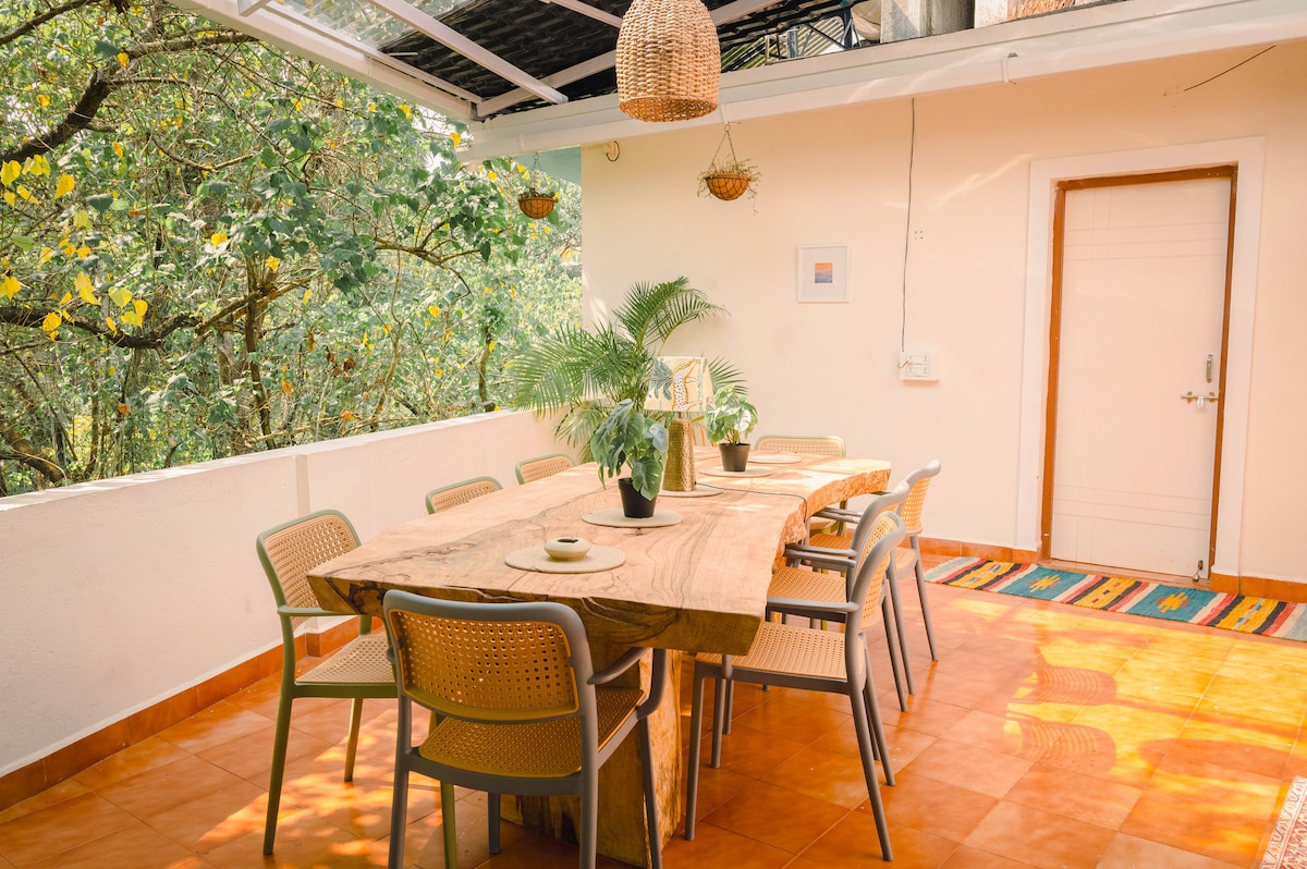 Hideaway confortabil în Goa de Nord – plajă, balcoane și farmec local!!! Imaginează-ți că te trezești cu sunetele moi ale naturii, savurând cafeaua de dimineață cu verdeață luxuriantă și un deal la vedere. Bine ai venit la evadarea ta de vis din Goa, unde confortul confortabil întâlnește magia vieții tropicale. Spațioasă și aerisită, această locuință îți va oferi posibilitatea de a te reîncărca, de a te reconecta și de a te bucura de farmecul Goa, ideal pentru vacanțe, vacanțe sau stații de lucru. Bine ai venit la Gezellig - a doua unitate a Mogachestays.goa