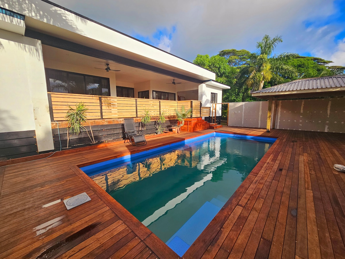 Bine ai venit la JH Pool Villa - evadarea ta privată de pe insulă în apropiere de oraș. Oferă o locuință spațioasă cu 4 dormitoare și zonă închisă pentru piscină privată. Ascuns pe drumul din spate în Tupapa, făcându-l o descoperire rară, care oferă atât proximitate față de oraș, cât și viață liniștită. Vei fi la mai puțin de 15 minute de mers cu mașina de Muri și la 5 minute de mers cu mașina de inima orașului Avarua, unde vei găsi magazine, cafenele, piețe și atracții locale — dar când te vei întoarce la vilă, te vei simți ca și cum ai fi la kilometri distanță de agitație.